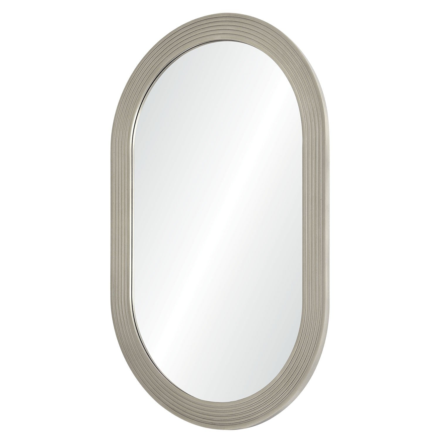 The August Oval Mirror is an Art Deco inspired hand carved wooden framed mirror in silver finish. Simple yet bold, let this mirror shine in your home or office.