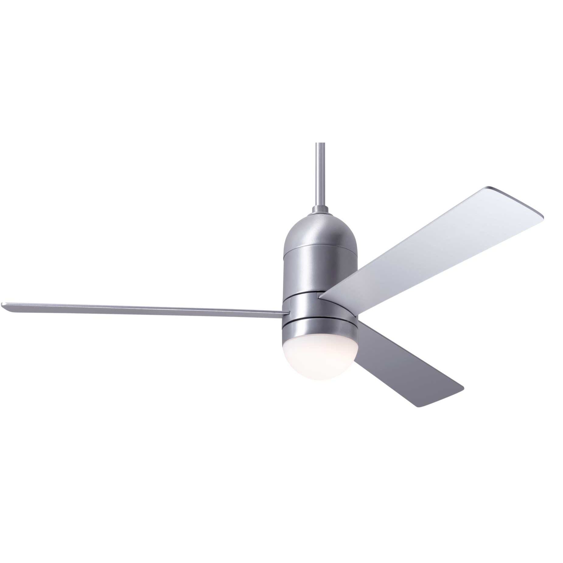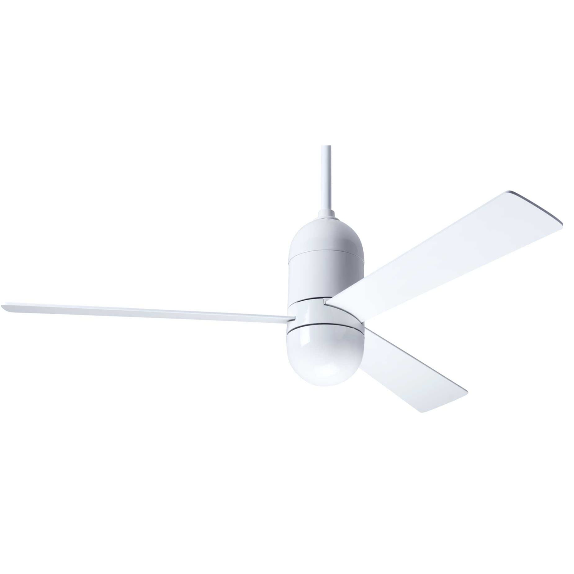 The Cirrus has a very attractive rounded cylindrical shape that blends in nicely with any contemporary decor. The blade span is 50". Let this uniquely shaped and beautifully modern fan add a sleek look to your space. Includes an energy efficient DC motor. Available in gloss white or brushed aluminum finish.