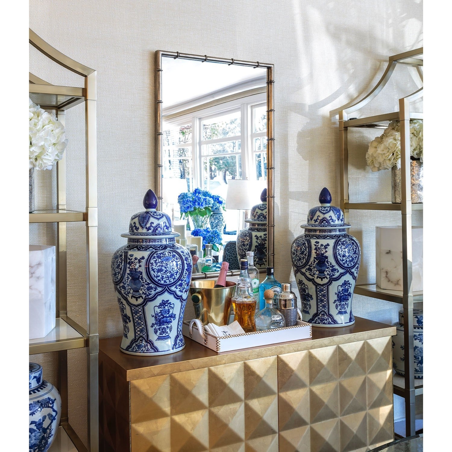Designed by acclaimed interior designer Barclay Butera, this versatile iron mirror is a hand welded and finished in a gold leaf. Non-beveled center mirror. Cleat hardware provided. Item can hang horizontally or vertically.