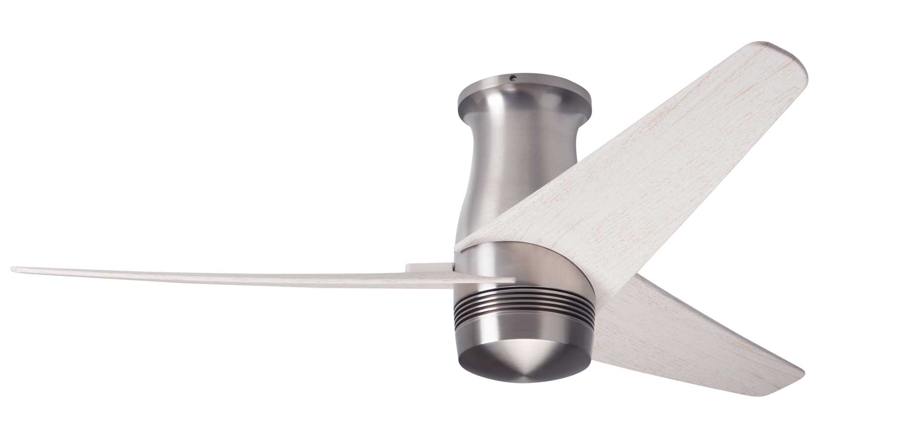 The Velo Hugger is the low-profile version of the Velo fan and includes a high efficiency DC motor. It has an ultra-cool barrel shaped fan housing with vented ring detailing that provides a very hip look. Three molded plastic blades round out the functional style of this contemporary ceiling fan. Perfect for lower ceilings in your home, loft or business! The fan includes a remote. Wall control available.
